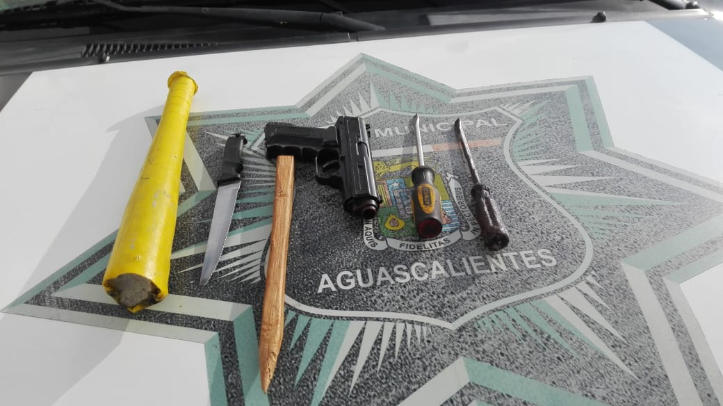 El individuo reaccionó de forma evasiva sin poder darse a la fuga, encontrándose en ese momento en poder de dos desarmadores, un cuchillo y un arma de Juguete; asimismo, al consultar sus datos generales se pudo conocer que el individuo cuenta con el antecedente de tener varios procesos cumplidos por robo.