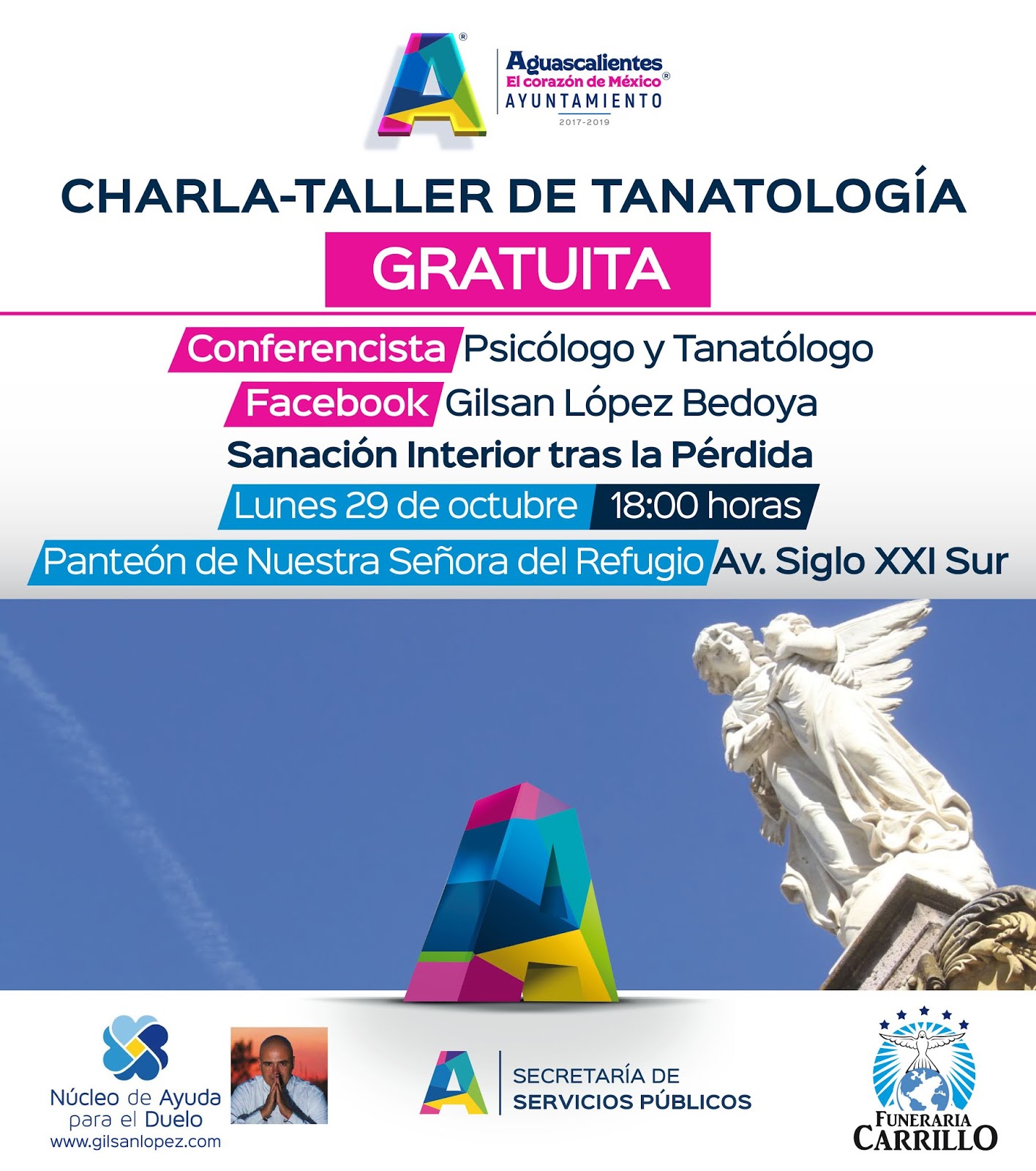 En un hecho sin precedentes y en el marco de una fecha significativa para los mexicanos, quienes recuerdan en este periodo a sus difuntos, el Ayuntamiento de Aguascalientes pone a disposición de la ciudadanía un nuevo servicio de acompañamiento emocional dirigido a las familias que han perdido a un ser querido y que estará encabezado por el reconocido Psicólogo, Terapeuta y Tanatólogo Gilsan López. Así lo informó Rodolfo Télles Moreno, titular de la Secretaría de Servicios Públicos (SSPM).