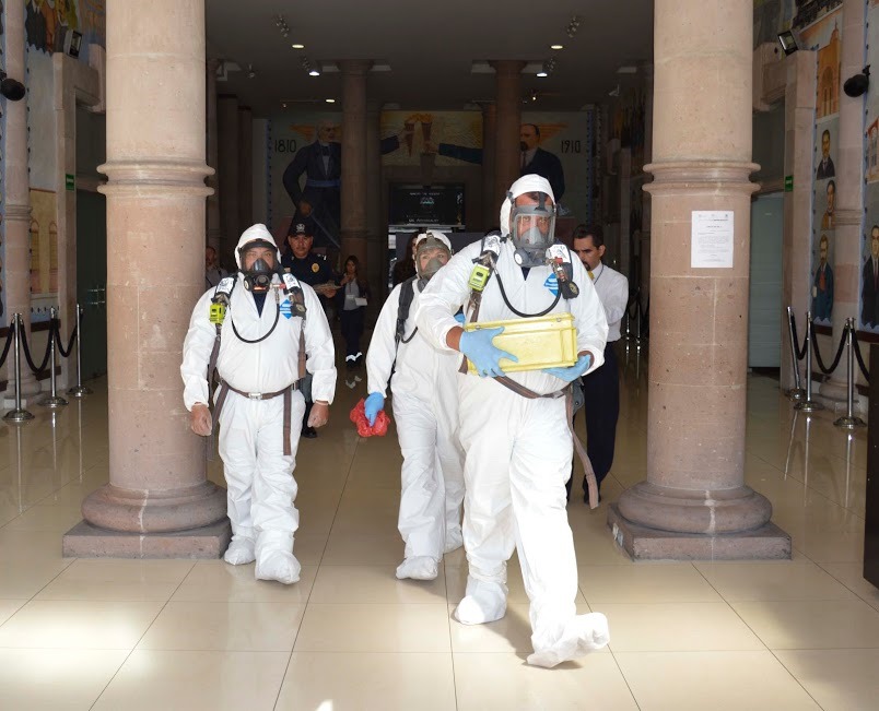 Ante la hipótesis de emisión de gases, la Unidad Interna de Protección Civil de la LXIV Legislatura, encabezó el desalojo de personal en los dos edificios del Poder Legislativo, en un tiempo de 2 minutos con 23 segundos.