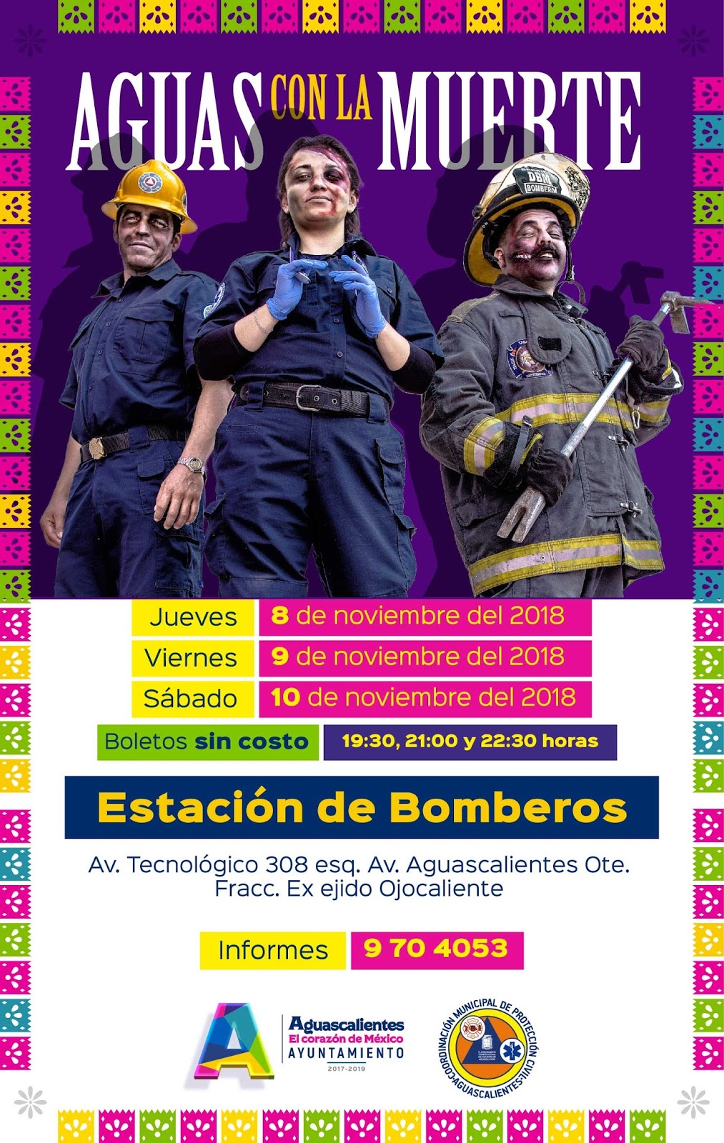 Debido al éxito del recorrido temático “Aguas con la Muerte”, que realiza la Coordinación Municipal de Protección Civil de Aguascalientes, el cual busca concientizar a la ciudadanía sobre los riesgos que existen en los diferentes escenarios de la vida diaria y fomentar la cultura de la prevención, se ampliarán las presentaciones de dicho evento para que más habitantes del Corazón de México puedan disfrutar el espectáculo.