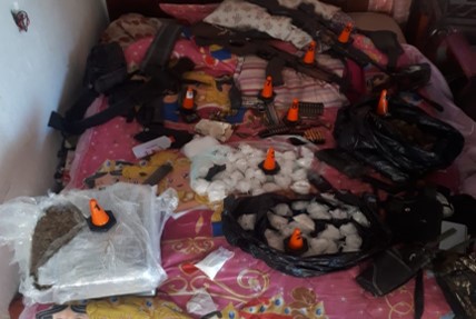 De esta manera, se aseguró: Cinco kilos 292 gramos 7 miligramos de Marihuana; un kilo 571 gramos 6 miligramos de Clorhidrato de Metanfemina; un arma de fuego, calibre 7.62×39, con su respectivo cargador abastecido con 20 cartuchos útiles; un arma de fuego calibre .38 Super, con su respectivo cargador abastecido con nueve cartuchos útiles.