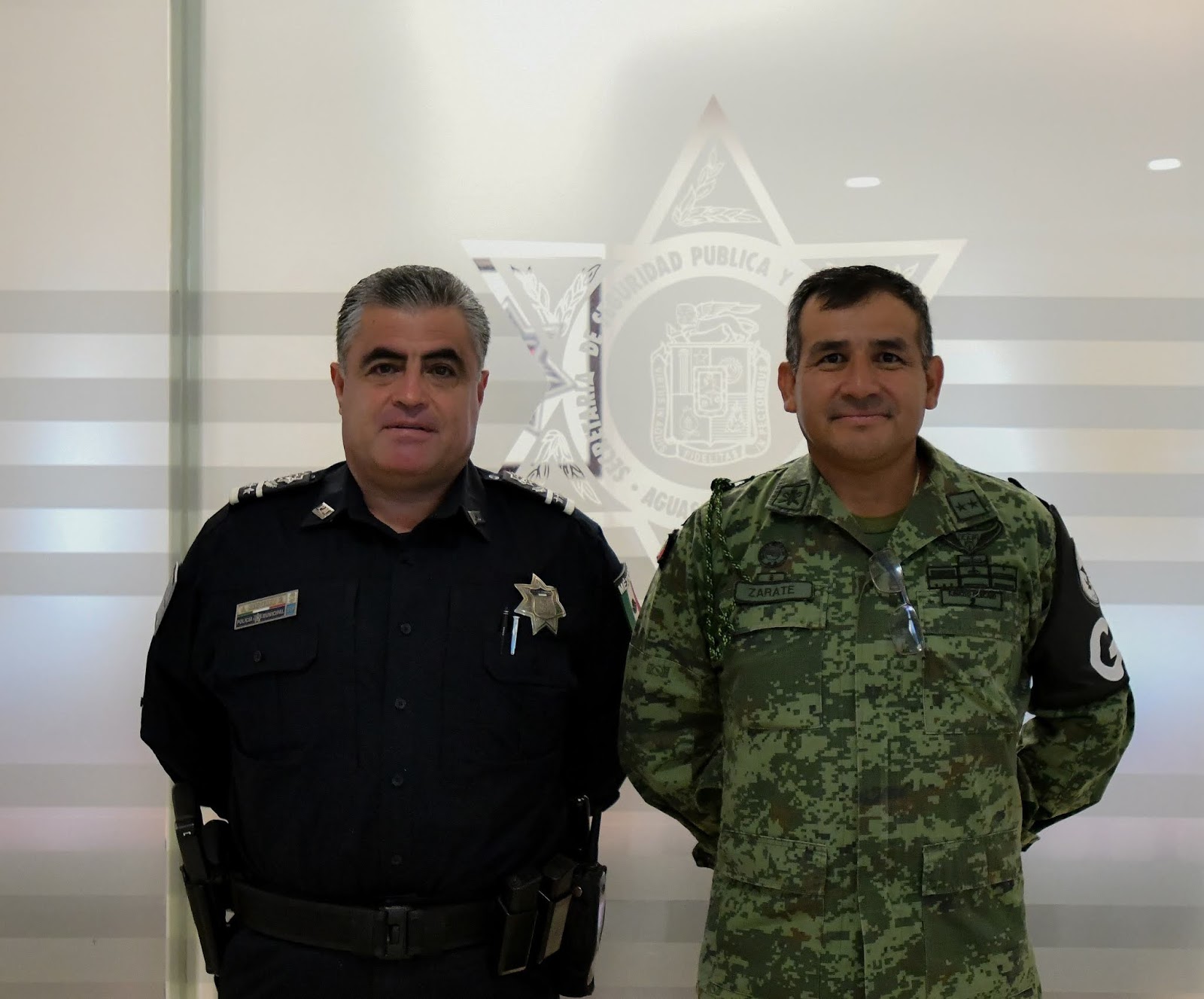 En primera instancia el Secretario de Seguridad Pública del Municipio de Aguascalientes (SSPM), Antonio Martínez Romo, recibió en el Complejo de Seguridad Pública al Inspector en Jefe de la Guardia Nacional Alejandro Zárate Nava, para darle a conocer las estrategias operativas de la Policía Municipal y presentarlo con los titulares de cada Destacamento, Grupos Especiales, Policía Vial, Unidad Municipal de Atención Inmediata (UMAI) y la Dirección de Justicia, refrendando su disposición para apoyar las operaciones que lleve a cabo la corporación federal.