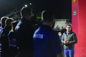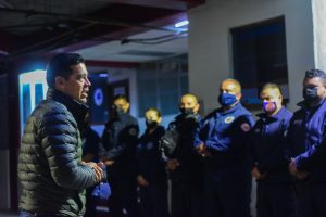 Posteriormente visitó a los trabajadores de Protección Civil y Bomberos municipales, a quienes de igual manera les reconoció la labor que realizan, la valentía y la entrega.